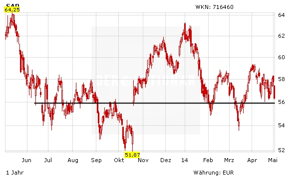 DER AKTIONÄR bleibt weiter optimistisch für die SAP-Aktie. Mit dem Cloud-Geschäft und den Big-Data-Dienstleistungen setzt der Konzern auf Zukunftsmärkte. Investierte Anleger bleiben dabei. Das Kursziel lautet 75 Euro. Ein Stopp bei 49 Euro sichert die Position ab.