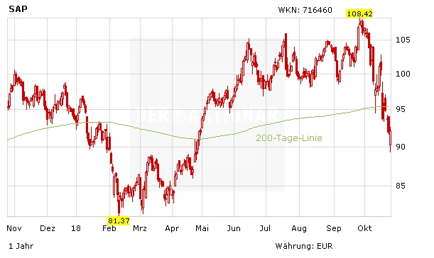 Seit Monatsbeginn hat die SAP-Aktie 17 Prozent verloren. Heute geht es etwas aufwärts – doch wirkliche Impulse, die diesen Trend drehen könnten, gibt es noch nicht.