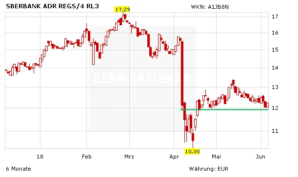 Die Erholung der Sberbank ist in vollem Gange. Aufgrund der US-Sanktionen ist das Papier der größten russischen Bank im April etwas unter die Räder gekommen. Diese könnten die Bank laut Chef Herman Gref im laufenden Jahr fünf Prozent der Gewinne kosten. Das Risiko ist nun eingepreist und die Anzeichen einer Fortsetzung der Aufwärtsbewegung mehren sich.
