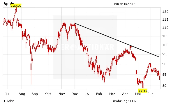 Sollten sich diese Details des recht gut informierten Wall Street Journal bewahrheiten, würden sich die kritischen Stimmen wieder mehren, die Apples Innovationskraft schon länger infragestellen – von der Enttäuschung der Apple-Community ganz zu schweigen. Anleger sollten daher mehr denn je den Stoppkurs bei 77 Euro beachten.