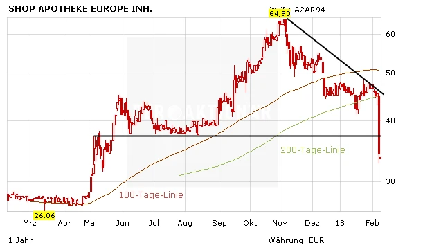 Die AKTIONÄR-Empfehlung wurde vor einigen Wochen bereits bei 44 Euro mit einem Gewinn von rund 24 Prozent ausgestoppt. Mit dem gestriegen Kursrutsch notieren die Papiere auf dem tiefsten Stand seit Mai 2017. Spekulativ orientierte Anleger sollten sich den Wert wieder auf die Watchlist packen. Denn die Shop Apotheke Europe erzielt einen Großteil des Umsatzes mit rezeptfreien Medikamenten, und das in Mittel- und zum Teil auch Südeuropa. Darüber hinaus haben zuletzt mehrere Insiderkäufe zu Kursen um die 45 Euro stattgefunden.