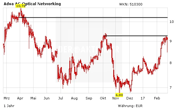 Im frühen Handel sackte die ADVA-Aktie dennoch um rund acht Prozent auf 8,44 Euro ab. Im Anschluss konnte sich der Kurs aber schnell wieder von diesen Tiefstständen lösen. Gegen Mittag notierte der Titel bereits wieder über der 9-Euro-Marke. Die nächsten charttechnischen Widerstände warten nun bei 9,35 und 10,50 Euro. DER AKTIONÄR spekuliert im Real-Depot vorerst auf weiter steigende Kurse.