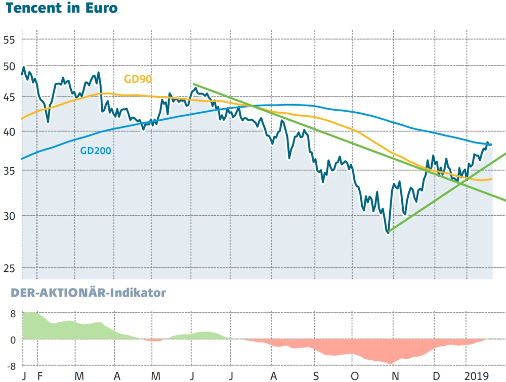 Derart positive Nachrichten lassen die Tencent-Aktionäre jubeln. Seit zwei Monaten geht es mit der Aktie wieder aufwärts. Der Abwärtstrend ist längst durchbrochen und auch die 90-Tage-Linie wurde geknackt. Am Freitag gelang es dem China-Papier sogar, durch die 200-Tage-Linie zu stoßen – ein klares Kaufsignal. DER AKTIONÄR empfiehlt Anlegern, nachdem bereits in Ausgabe 42/2018 zum Aufbau einer ersten Position geraten wurde, jetzt nachzukaufen. Fundamental bleibt das Unternehmen hervorragend aufgestellt.