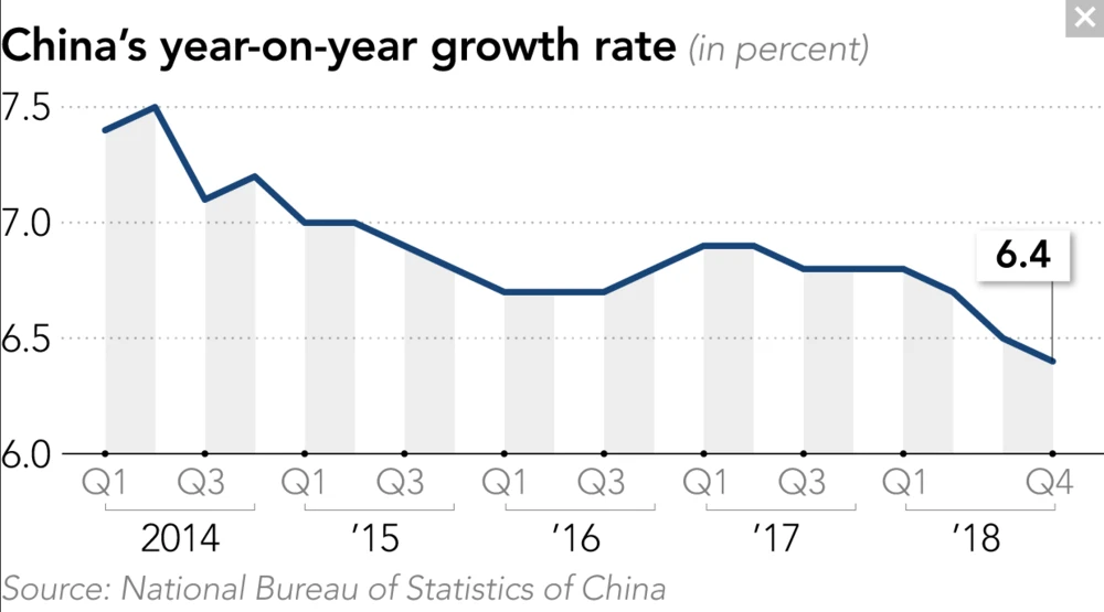Chinas Wirtschaftswachstum hat sich von Oktober bis Dezember 2018 weiter eingetrübt. Das reale Bruttoinlandsprodukt wuchs im vierten Quartal nur 6,4 Prozent – ein Rückgang von 0,1 Prozent gegenüber dem dritten Quartal. Die chinesische Wirtschaft entwickelt sich damit ähnlich schlecht wie zur Zeiten der Lehman-Pleite oder des Tian’anmen-Massakers. China kämpft mit den indirekten Auswirkungen des Handelskrieges zwischen den USA und China. Aktuell gelten auf chinesische Exporte im Umfang von 250 Milliarden Dollar Einführzölle von 25 Prozent. Das erhöht die Preise und summiert sich zu anderen negativen Faktoren wie rückläufige Auto-Subventionen und einen schwächeren Smartphone-Markt.