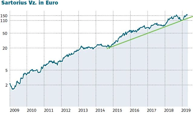 Die Aktie von Sartorius hat eine unglaubliche Rallye hinter sicher. Noch vor zehn Jahren – genauer gesagt im März 2009 – notierte die Aktie von Sartorius bei rund 1,50 Euro. Erst vor wenigen Tagen hat das Papier ein neues Rekordhoch bei 163,70 Euro markiert. Danach rutschte die Aktie allerdings wieder unter das alte Hoch zurück. Die heutigen enorm starken Zahlen verleihen der Sartorius-Aktie allerdings schon wieder mächtig Auftrieb. Knapp vier Prozent geht es am Donnerstagmorgen nach oben. DER AKTIONÄR rät weiterhin: Investierte Anleger lassen die Gewinne laufen und sichern sich mit einem Stopp etwas unterhalb der 200-Tage-Linie im Bereich von 125 Euro ab.