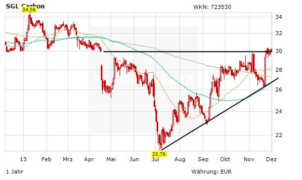 Das Sparprogramm „SGL2015“ soll die Wende bringen, 150 Millionen Euro will SGL den Gürtel enger schnallen. Ein Werk in Kanada wurde bereits dicht gemacht. „SGL hat in den guten Jahren bis 2008 einiges an "Speck" angesetzt, was nun wieder verschlankt werden soll. Mit etwas Glück stellen sich bereits 2014 erste nennenswerte Erfolge ein“, sagt Experte Gabriel. Zudem setzt die Börse durch den Vorstandswechsel zum 1. Januar auf neue Impulse. „Einen Vorteil bei Kapitalanlegern dürfte Jürgen Köhler haben, da Robert Koehler bei einigen Investoren mit seiner direkten Art auch schon mal "verbrannte Erde" hinterlassen hat“, so Gabriel.