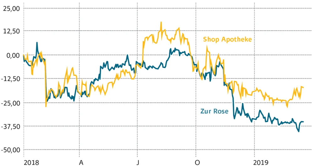 Performance von Shop Apotheke und Zur Rose seit 2018 im Vergleich