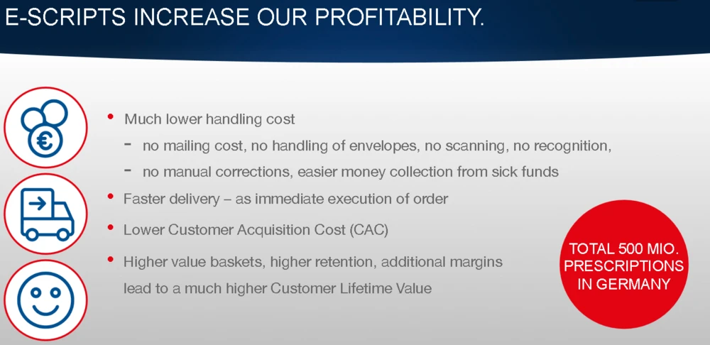 Der Weg für das E-Rezept wird sukzessive frei gemacht. „Das elektronische Rezept soll laut Gesundheitsminister Spahn 2020 kommen. Davon wollen wir profitieren", so der Finanzvorstand von Shop Apotheke Europe, Dr. Ulrich Wandel, gegenüber DER AKTIONÄR.