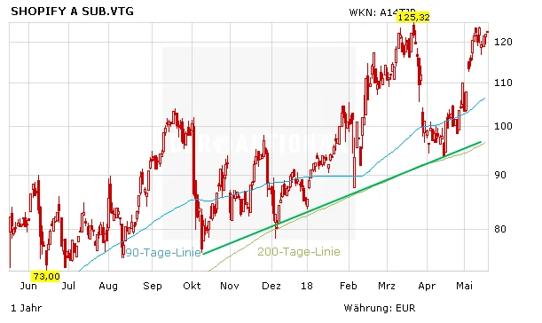 Nach dem Rücksetzer im März setzte die Shopify-Aktie ihren Aufwärtstrend fort. Folgt bald das Allzeithoch?