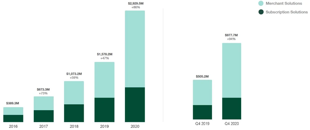 Im Detail erwartet das Management, dass der Bereich „Subscription Solutions“ weiter wachsen wird und zwar schneller als in jedem Jahr vor 2020. Insbesondere durch internationale Händler sei aber mit einem verstärken Beitrag zum Umsatzwachstum zu rechnen. Darüber hinaus sei nicht zu erwarten, dass sich die Zunahme des Bruttowarenumsatzes im vergangenen Jahr, welches die „Merchant Solutions“ antrieb, wiederhole.