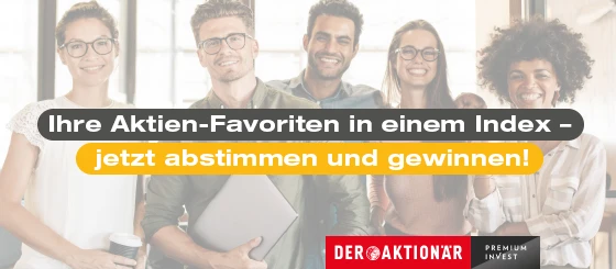 Haben Sie sich schon für Ihre 3 Aktien-Favoriten entschieden? Denn genau diese Aktien suchen wir für den brandneuen Community Index von DER AKTIONÄR. Erstmals geben wir Ihnen die Gelegenheit, Ihre Lieblingsaktien in einen brandneuen Index zu wählen – ganz einfach auf unseren Social-Media-Kanälen Instagram, Facebook und Twitter. Es stehen Ihnen alle Aktien an der Börse zur Verfügung – ganz gleich ob aus dem Bereich Tech, Commerce, Industrie oder Pharma. Sie allein entscheiden.