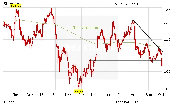Die Aktie von Siemens ist vor dem Feiertag deutlich unter Druck geraten. Die Sorge, dass das Kapital wieder dem Wettbewerber General Electric zufließt, sowie eine skeptische Analystenstimme haben den DAX-Titel auf den tiefsten Stand seit Mai gedrückt. Probleme könnte es vor allem bei der Gewinnentwicklung des Konzerns geben.
