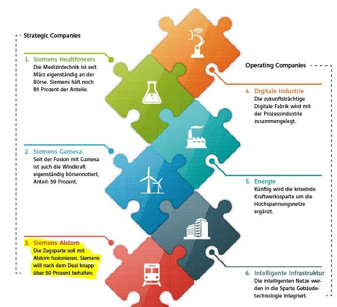 Nach dem Aus für den Alstom-Deal erklärte Siemens, dass nun „alle Optionen für Siemens Mobility geprüft“ würden. Realistisch erscheint vor allem ein Börsengang. Ähnlich wie bei der Medizintechniksparte Healthineers könnte das Zuggeschäft in die Eigenständigkeit entlassen werden, Siemens würde voraussichtlich einen Mehrheitsanteil behalten.