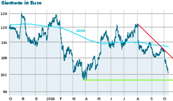 Aktuell notiert die Aktie unmittelbar oberhalb der wichtigen 100-Euro-Marke. Noch kann diese Unterstützung zwar verteidigt werden. Setzt sich die allgemeine Abwärtsspirale an den Märkten aber fort, wird sich Siemens diesem nicht entziehen können. Ein Fall unter das Jahrestief bei 99,78 Euro wäre möglich. Dann drohen weitere Abschläge.