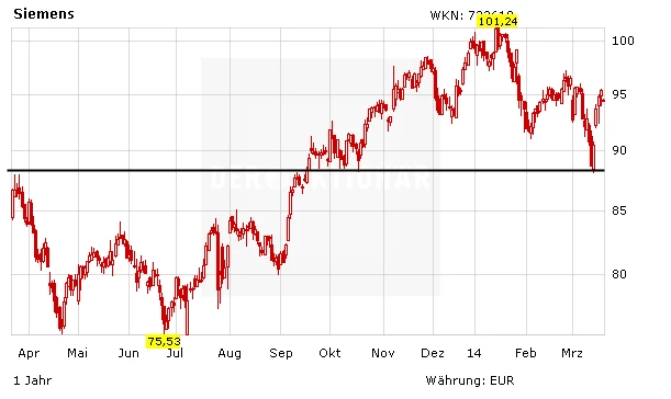 Der DAX-Konzern wird durch den Umbau unter dem seit August 2013 amtierenden Chef Joe Kaeser weiterhin attraktiv aufgestellt sein. DER AKTIONÄR ist vom Potenzial der Aktie nach wie vor überzeugt. Sollte die 88-Euro-Marke doch noch fallen, sichert ein Stopp bei 84 Euro die Position ab.