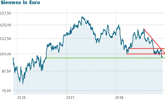 Am Montag hat sich bei Siemens aus charttechnischer Sicht ein wichtiges Ereignis zugetragen. Die Gap vom dritten August 2016 wurde nach über zwei Jahren endlich geschlossen. In der Folge hat die Aktie auch bereits wieder angezogen und notiert inzwischen wieder im Bereich zwischen 98 und 104 Euro – hier hat sich in den vergangenen Wochen ein massiver Seitwärtskorridor ausgebildet.