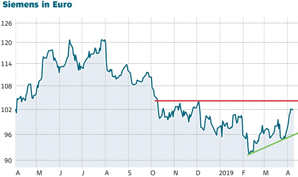 Im schwachen Marktumfeld behauptet sich die Siemens-Aktie am Montag über der 100-Euro-Marke. Eine gute Nachrichtenlage hatte den DAX-Titel zuletzt wieder nach oben getrieben. Doch noch ist nicht alles Gold, was glänzt. Der Umbau bleibt langwierig und kostenintensiv, der Konzern muss zudem für andere Maßnahmen viel Geld in die Hand nehmen.