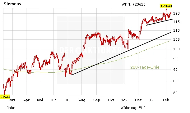 Nach der furiosen Aufwärtsbewegung auf ein Mehrjahreshoch sind die Papiere von Siemens reif für eine Korrektur beziehungsweise Konsolidierung. Anleger sollten Siemens im Auge behalten und bei günstigen Kursen zugreifen. Denn fundamental läuft es wie geschmiert – ein Großauftrag jagt den nächsten. Jedoch sorgt nicht nur das Kerngeschäft für Wachstumsimpulse.
