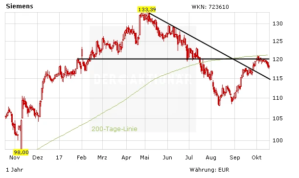 Wenig Freude bereitet der Mutter aktuell auch die Windkrafttochter Siemens Gamesa. Seit der Fusion mit Siemens hat die Gamesa-Aktie deutlich an Wert verloren. Der Konzern leidet unter dem Preisdruck bei Windkraftanlagen und musste Ende der vergangenen Woche sogar seine Prognose für das laufende Jahr senken. Die schwache Entwicklung belastet auch die Mutter Siemens, die nach dem Zusammenschluss eine Beteiligung von 59 Prozent hält. Inzwischen sollte der Großteil der Probleme aber eingepreist sein, durch den Vormarsch der erneuerbaren Energien winken neue Aufträge und auch die Preise dürften sich mittelfristig wieder stabilisieren.
