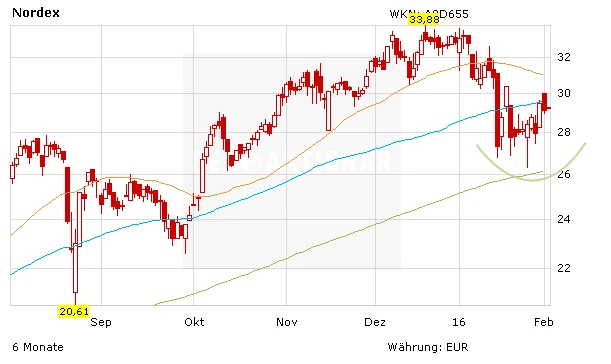 DER AKTIONÄR geht derzeit nicht davon aus, dass Nordex von einem Konkurrenten übernommen wird. Zugegeben, für einen Konzern aus Asien, der sich ein Standbein in Europa aufbauen möchte, wäre Nordex sicherlich ein interessantes Ziel. Allein schon die Fantasie treibt die Aktie weiter nach oben. Anleger sollten von diesem Trend auch weiterhin profitieren. In einem insgesamt freundlichen Marktumfeld hat die Aktie im Jahr 2016 durchaus das Potenzial bis 40 Euro plus X.