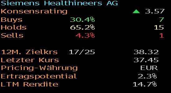 Die Mehrheit der Experten zeigt sich dabei weiter bullish für Siemens Healthineers. Die Nachrichtenagentur Bloomberg erfasst derzeit 23 Analysten, die die Aktie regelmäßig covern. Sieben Kaufempfehlungen steht dabei lediglich eine Verkaufsempfehlung gegenüber. 15 Experten raten dazu, die Aktie zu halten.