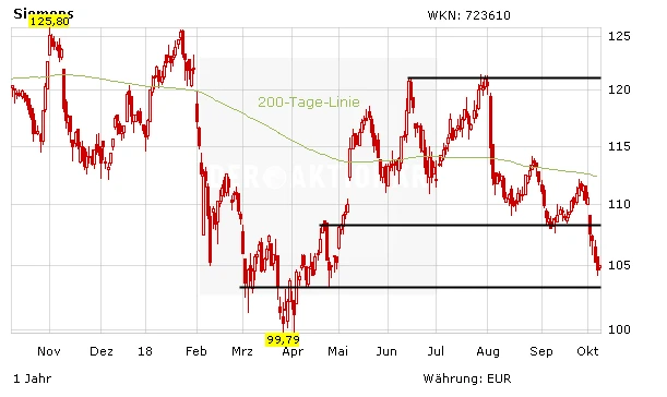 Die Bewertung ist attraktiv. Zudem hat sich Siemens für die Industrie der Zukunft gut positioniert. Dennoch rät DER AKTIONÄR aktuell von einem Neueinstieg ab, da sich das Chartbild zuletzt deutlich eingetrübt hat. Im schwachen Marktumfeld sind Industriekonglomerate derzeit nicht gefragt. Erst über der Marke von 108,50 Euro denken Anleger wieder über Käufe nach.