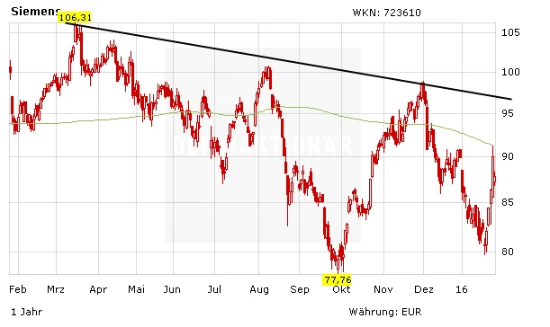 Vor einem Neueinstieg sollten Anleger zunächst eine Bestätigung des jüngsten Ausbruchs abwarten – aus charttechnischer Sicht rücken als nächstes die 200-Tage-Linie bei 91,21 Euro und der mittelfristige Abwärtstrend im Bereich von 97,50 Euro in den Fokus.
