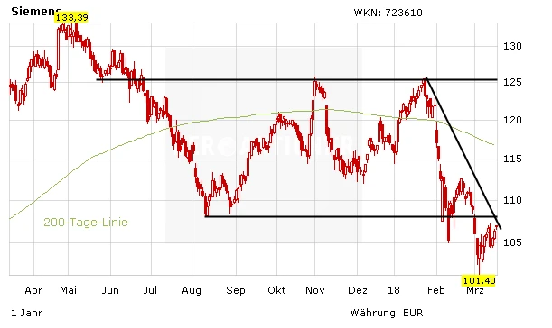 Der Börsengang der Medizintechnik sollte der Siemens-Aktie neuen Schwung verleihen. Eigenständig dürfte die Sparte eine höhere Bewertung rechtfertigen. Aufgrund des schwachen Chartbilds sollten Neueinsteiger aber vorerst abwarten. Wer investiert ist, bleibt an Bord und beachtet den Stopp bei 100 Euro.