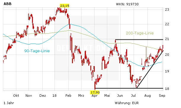 In den vergangenen Jahren hat der Schweizer Industriekonzern ABB den Anlegern wenig Freude bereitet. Der langfristige Seitwärtstrend ist zwar nach wie vor intakt, dank guter Nachrichten hat sich das Bild zuletzt aber deutlich aufgehellt. Eine Kaufempfehlung der Citigroup verleiht am Dienstag neuen Rückenwind.