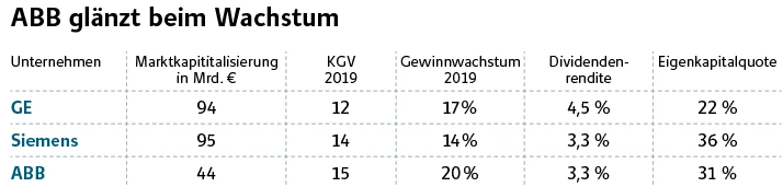 Dank Elektro-Infrastruktur und Roboter-Know-how wächst ABB schneller als die Rivalen Siemens und GE. Diese weisen zwar ähnlich hohe Dividendenrenditen und ein günstigeres KGV auf, Anleger suchen die Wettbewerber jedoch vergeblich auf der „Change the world“-Liste.