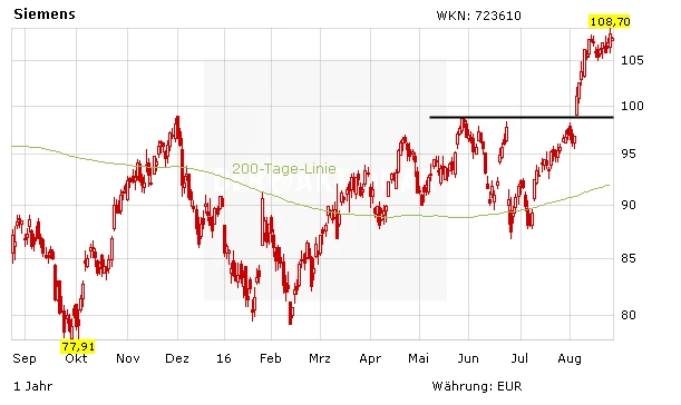 Gemessen am KGV ist die Siemens-Aktie günstig bewertet. Charttechnisch konnten die Papiere die letzten Hürden überwinden und ein neues Mehrjahreshoch markieren. DER AKTIONÄR hat das Kursziel auf 126 Euro angepasst und den Stopp auf 88 Euro nachgezogen. Der Weg nach oben ist frei – Anleger können zugreifen!