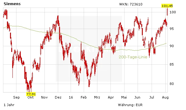 Siemens stellt die Konkurrenz in den Schatten: Grandiose Quartalszahlen sorgen für die zweite Erhöhung der Gewinnprognose in diesem Geschäftsjahr. Die Aktie befindet sich im Höhenflug und notiert wieder über der psychologisch wichtigen 100 Euro-Marke.
