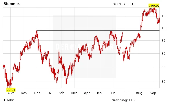 Siemens-Chef Joe Kaeser sieht den DAX-Konzern kurz vor dem Abschluss des Geschäftsjahres auf gutem Kurs. In einem Interview ließ er durchblicken, dass die Jahressziel wohl erreicht würden. Die Aktie beendet ihre jüngste Konsolidierung.