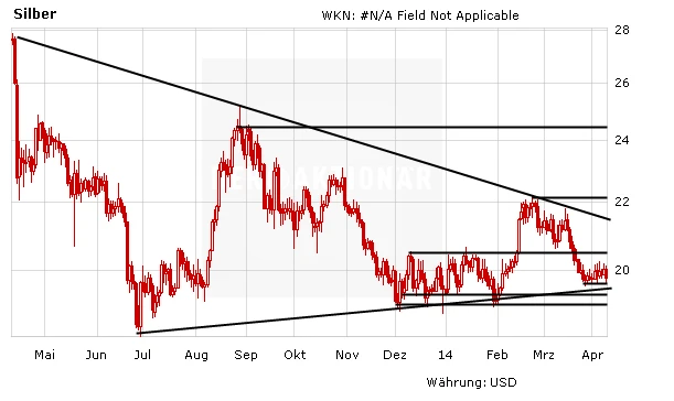 Derzeit deutet freilich wenig auf einen solchen Ausbruch hin. Im Gegenteil: Silber entwickelt sich seit Wochen schwächer als Gold. Analysten sehen eine nachlassende Investmentnachfrage nach dem Edelmetall als Hauptbelastungsfaktor an. Zwar lässt sich diese nachlassende Nachfrage kaum in Zahlen festmachen. Doch sei die zuletzt starke Investmentnachfrage vor allem mit den Anleihekaufprogrammen der FED zu erklären gewesen. Freilich: Bei dieser Argumentation muss die Frage gestattet sein: Wieso ist dann Silber in den vergangenen beiden Jahren nicht stärker gestiegen? DER AKTIONÄR teilt die pessimistische Einschätzung nicht. Gleichwohl darf man die Augen auch nicht vor der charttechnischen Wirklichkeit verschließen. Und die sieht derzeit alles andere als rosig aus. Für langfristig orientierte Investoren bietet sich aber vor allem bei physischen Anlagen derzeit eine gute Einstiegsgelegenheit, um die Silberbestände auszubauen.