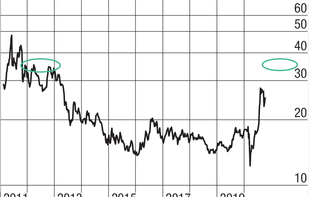 Das Kursziel für diese Aufwärtsbewegung liegt nach wie vor im Bereich von 35 Dollar. Anleger müssen auf der Zeitschiene ein ganzes Stück zurückgehen, um sich an diese Kurse zu erinnern. Im Jahr 2012 notierte der Silberpreis letztmalig in diesem Bereich. Doch charttechnisch ist mit dem Ausbruch über das Hoch aus dem Jahr 2016 der Weg für den Silberpreis in diese Zielzone geebnet. Zwar dürfte es dann einmal zu einer etwas ausgeprägteren Korrektur kommen. Doch sowohl charttechnisch als auch fundamental spricht einiges dafür, dass Silber dann in der zweiten Jahreshälfte 2021 beziehungsweise 2022 das Allzeithoch im Bereich von 50 Dollar angehen kann. Oder, um es mit den Worten von Bloomberg Intelligence zu sagen: Die Zeiten von Silber bei 12 Dollar, was wir noch im März gesehen haben, gehören wohl für immer der Vergangenheit an.
