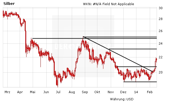 Seit Mitte November befand sich der Silberpreis in einer Seitwärtsrange. Im Nachhinein könnte man sagen, das Edelmetall arbeitete an einer Bodenbildung. Ende vergangener Woche gelang der eindrucksvolle Ausbruch aus dieser Seitwärtsrange. Ein Kaufsignal wurde generiert, die Bodenbildung scheint abgeschlossen. Anleger können auf höhere Kurse hoffen. Zunächst sollte der Silberpreis jetzt den Widerstand bei 23,00 Dollar, später dann die Widerstandszone im Bereich von 24,00 bis 24,50 Dollar ins Visier nehmen.