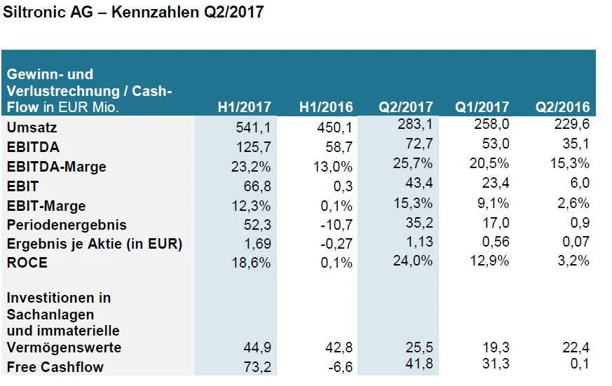 Der Konzern rechnet nun mit einem EBITDA in einer Größenordnung von 900 bis 935 Millionen Euro (Vorjahr 935,2 Millionen Euro). Bisher kalkulierte Wacker Chemie mit einem Rückgang dieser Kennzahl im mittleren einstelligen Prozentbereich. Ein Grund dafür liefert die Tochtergesellschaft Siltronic, an der die MDAX-Firma nach wie vor rund 30 Prozent hält.