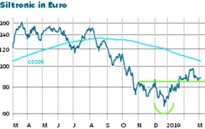 Das Fazit hat Bestand: Positive Impulse vom Handelsstreit zwischen den USA und China könnten die Halbleiterbranche und damit auch die Siltronic-Aktie stimulieren. Zieht die Nachfrage bereits im zweiten Halbjahr wieder an und gelingt es dem Vorstand, nach dem wahrscheinlichen Konsolidierungsjahr 2019 schnell wieder auf den Wachstumspfad zurückzukehren, sollte das Interesse an der Aktie schon bald wieder zunehmen. Das Ziel bei 100 Euro hat weiter Bestand. Investierte Anleger und alle AKTIONÄR-Leser, die die „Übertreibung als Chance“ in der Ausgabe 02/19 bei 69,82 Euro zum Einstieg genutzt haben, sichern ihre Gewinne aber mit einem engen Stopp im Bereich zwischen 84,50 und 84 Euro ab.