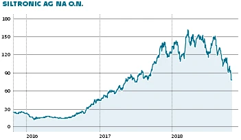 Trotz der Erhöhung der Jahresprognose im Juli und der erneuten Anpassung der Erwartungen zu den Q3-Zahlen heute spiegelt sich die guten Entwicklung von Siltronic kein bisschen im Kursverlauf der Aktie wieder. Während der Aktienkurs bis zum Jahresanfang 2018 eine beeindurckende Rallye hingelegt hat, wurde das Fahrwasser in Folge der schlechten Gesamtmarktlage unruhiger.