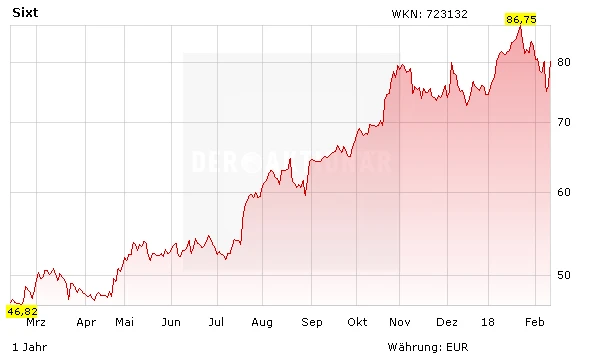 Die im SDAX notierten Sixt-Stammaktien sollten daher weiter Kurs auf das im Januar erreichte Rekordhoch von 86,75 Euro nehmen.