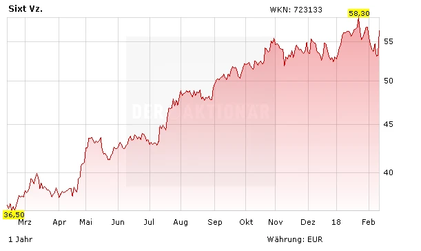 Für Anleger könnte sich aber auch ein Blick auf die Vorzugsaktien lohnen. Achtung: Anders als die Sixt-Stammaktien sind die Vorzüge nicht im SDAX notiert. Die Vorzugsaktien hinken den im Auswahlindex notierten Stämmen hinterher und werden derzeit aber mit einem historisch hohen Abschlag von rund 30 Prozent gehandelt. Dabei erhalten die Vorzugsaktionäre sogar eine etwas höhere Dividende.