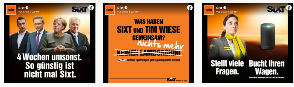 Es ist nicht das erste Mal, dass Sixt Prominente, die aktuell besonders im Rampenlicht stehen, als Aufhänger für die eigene Kundenakquise nutzt. Konzipiert wird diese Werbung sie seit Jahren von der Agentur Jung von Matt. Die Liste ist entsprechend lang und die Anspielungen sind immer eindeutig:
