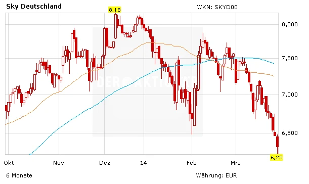 Keine gute Woche für Sky-Abonnenten: Ausgerechnet während des Top-Spiels BVB gegen Schalke sahen viele Kunden des mobilen Live-Streams vorübergehend einen schwarzen Bildschirm. Wenig Freude hatten zuletzt auch die Aktionäre von Sky. Seit Jahresbeginn hat das Papier rund 23 Prozent verloren.