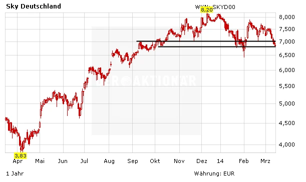 Sky Deutschland überzeugte die Marktteilnehmer durch sein Ergebnis für 2013. Der Bezahlsender hat im abgelaufenen Geschäftsjahr wie geplant zum ersten Mal Geld operativ verdient. Auch die Abonnentenzahl kletterte um 304.000 auf insgesamt knapp 3,67 Millionen Euro.