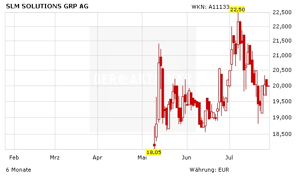 Es bleibt dabei: Eine Investition in Aktien der 3D Druckerbranche erfordert ein starkes Nervenkostüm. Die hohe Volatilität der Aktienkurse wird auch in den nächsten Monaten anhalten. Die Bewertung der Firmen ist sportlich. SLM zum Beispiel kommt bei einem angepeilten Umsatz von rund 36 Millionen Euro im laufenden Jahr auf eine aktuelle Marktkapitalisierung von 360 Millionen Euro. Dennoch: Die Perspektiven im 3D Druck-Bereich sind spannend. SLM Solutions ist demnach als Depotbeimischung durchaus geeignet.