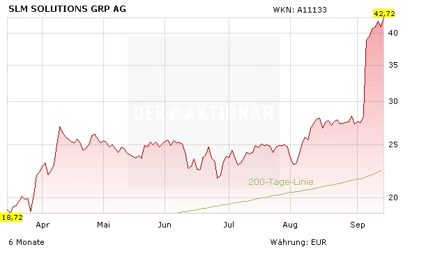 Anfang September schossen die Papiere von SLM Solutions um über 30 Prozent in die Höhe. Der Grund dafür war das Übernahmeangebot von General Electric (GE) für SLM. Mittlerweile notieren die Papiere deutlich über dem gebotenen Preis. Einige Anleger spekulieren auf ein höheres Angebot von GE, um die Übernahme sicherzustellen – auch ein Hedgefonds bringt sich in Position.
