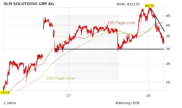 Für die Aktionäre von SLM Solutions verläuft das Jahr 2018 bislang nicht zufriedenstellend. Ausgehend vom Rekordhoch bei 49,70 Euro vom 05. Januar hat der TecDAX-Titel gut ein Drittel an Wert verloren. An der Technologie von SLM liegt es nicht. Denn mit den riesigen Metall-3D-Druckern hat sich das Unternehmen in einem wachstumsstarken Markt der Zukunft positioniert. Die Analysten von Equinet scheinen diese Einschätzung aktuell nicht zu teilen.