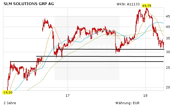 Die letzten Zahlen von SLM Solutions haben den Markt allerdings enttäuscht. Hinzu kam die schwache Marktsituation, wodurch die Aktie auf rund 33 Euro zurückgefallen ist. Für DER AKTIONÄR erneut eine spannende Einstiegschance. Weitere Kauflimits können bei 29,50 Euro und 27,50 Euro platziert werden, sofern der Markt noch einmal Druck bekommen sollte.