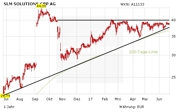 Mit dieser positiven Meldung erhält die SLM-Solutions-Aktie kräftigen Rückenwind und nimmt wieder Kurs auf den hartnäckigen Widerstand bei 40,00 Euro. Fällt diese Marke, sind Kurse um 45,00 Euro schnell möglich.