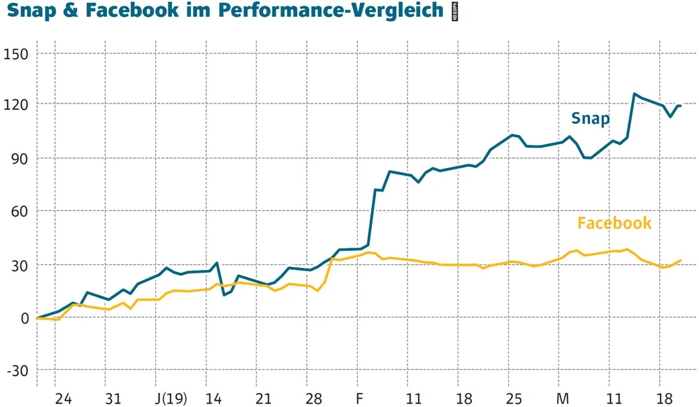 Sollten Anleger nach den 100 Prozent noch einsteigen oder zeichnet sich bereits ein Ende der Rallye ab? Hilfreich ist es dafür, Snap mit seinem ärgsten Konkurrenten Facebook zu vergleichen.